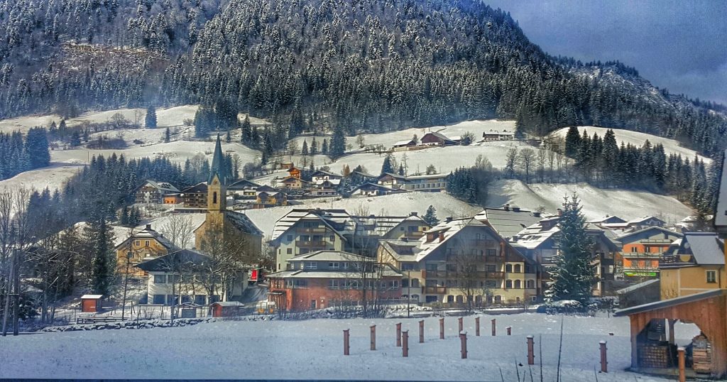 Köye geri dönüp kiliseyi, köy meydanını, birkaç mağaza ve kafeye girip, bu nefis manzara eşliğinde yaşayanları izliyoruz. Tabi bolca da fotoğraf çekiliyor bu süreçte. Öğlen olunca artık yola çıkma vaktidir diyoruz. Zira otobana kadar yine zorlu bir yol var Allahtan güneş açıyor ve kar yağışı da yok. Düne göre daha rahat geçecek yol. Hallstatt ile vedalaşıp, Avusturya’nın bu eşsiz köylerinden geçerken, kayak pistleri tabelaları, oradaki yaşama dair konuşturuyor bizi. Arada nereye bakacağımızı da şaşırıyoruz.