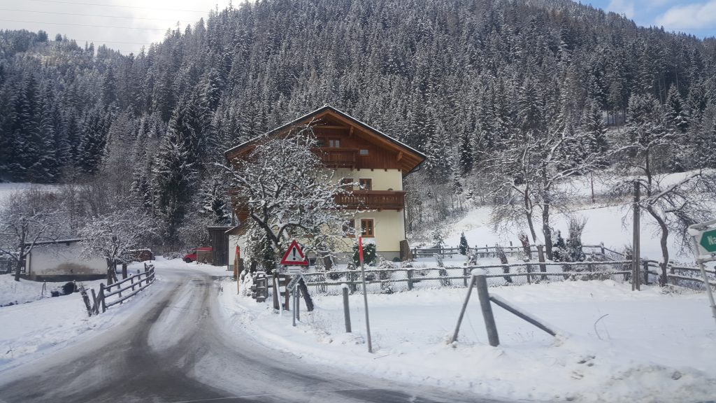 Otobanda yol alırken her yer kar ve arada nefis köyler görünüyor, fotoğraflarını çekmek güç. Bizdeki gibi bir seyir terasları da yok yol kenarlarında.