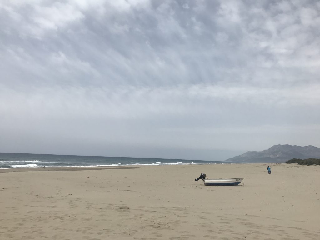 Bulutlu bir günde uzun, beyaz kumuyla Patara