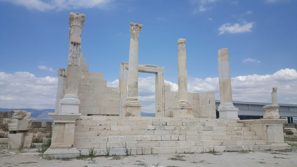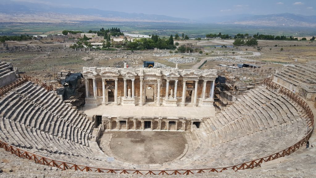 Denizli ili içerisinde bir tarafta Hierapolis diğer cenapta ise Laodikya var. Ortada bir düzlük. İki ayrı tepeye kurulmuş iki ayrı efsane kent. Laodikya’dan bakınca tepeye ilişmiş pamuk görünümündeki travertenleri görmek mümkün. Antik tiyatrosu, caddeleri, gymnasiumu, stadyumu, çeşmeleri, tapınak ve kiliseleri ile coğrafyamızda bulunan en önemli antik kentlerden biri Laodikya. Kazılar 1960’larda başlamış, son 10 yılda ise hızlanmış. Rehberimizin anlatımına göre daha da çok alan var kazılacak, ortaya çıkarılacak.