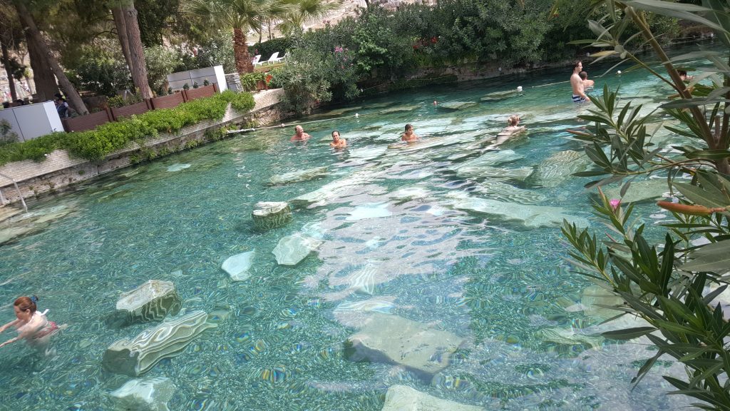 İşte aklımın çıktığı yer. Vakit olsa sene boyunca 36-37 derecelerde olan bu havuza atardım kendimi. Bir daha gelmek için al sana sebep! Havuza giriş ücreti 32 TL. Değer mi değer. Antik kenten kalan mermerler, sütunlar içinde şifalı suda yüzmek, 32 TL’nin çok çok üstünde bir haz bırakır insanda. Havuzda olanların yüzünden, keyfinden anladığım bu. Hem tüm Türkiye tanıtım filmlerinde yer alan o görüntü de işte bu havuzdan. Biliyor muydum? Hayır. Ayıp mı? Ayıp!