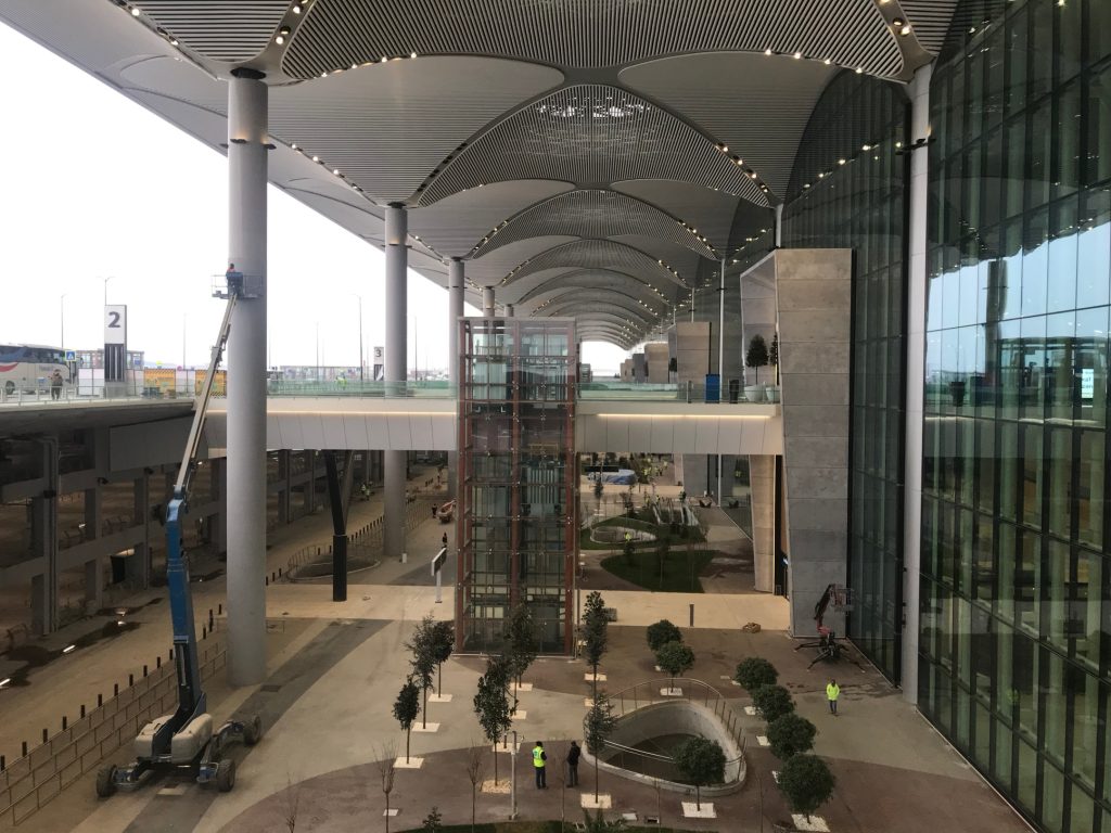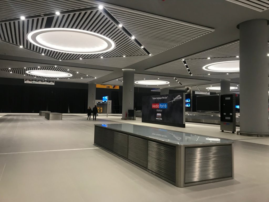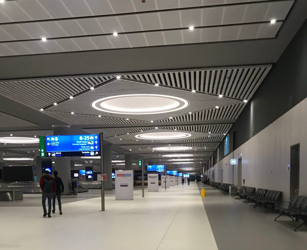 Büyük mü? Evet çok büyük. Devasa bir alan, dünyanın en minik ülkelerinden kat be kat büyük, öyle düşünün. Ha bir de girişte büyükçe bir cami yapılıyor. Orta Doğu ülkelerinin havaalanlarını hatırlattı bana.