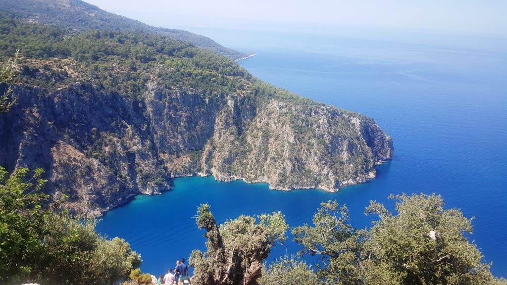 Sabah kahvaltı sonrası Fethiye merkezden Ölüdeniz‘e doğru araba ile devam ediyoruz. Ölüdeniz yokuş inişini görmeniz gerekir, bayram tatili sebebi ile İstanbul trafiğini aratmayacak bir yoğunluk var. Neyse ki az biraz biliyorum bölgeyi, ara sokaklardan Faralya tarafına giden yola doğru çıkıyoruz. Yol zor görünse de yavaş yavaş ilerliyoruz. Bir seyir noktasından Ölüdeniz’e doğru baktığımızda dağların arasındaki o mavilik insanı büyülüyor. Yola devam ediyoruz. Sert yamaçlara kurulmuş köyler, küçük gözleme, çay bahçeleri. Hepsine tek tek uğrayasım geliyor ancak hedefimiz Kabak Koyu.