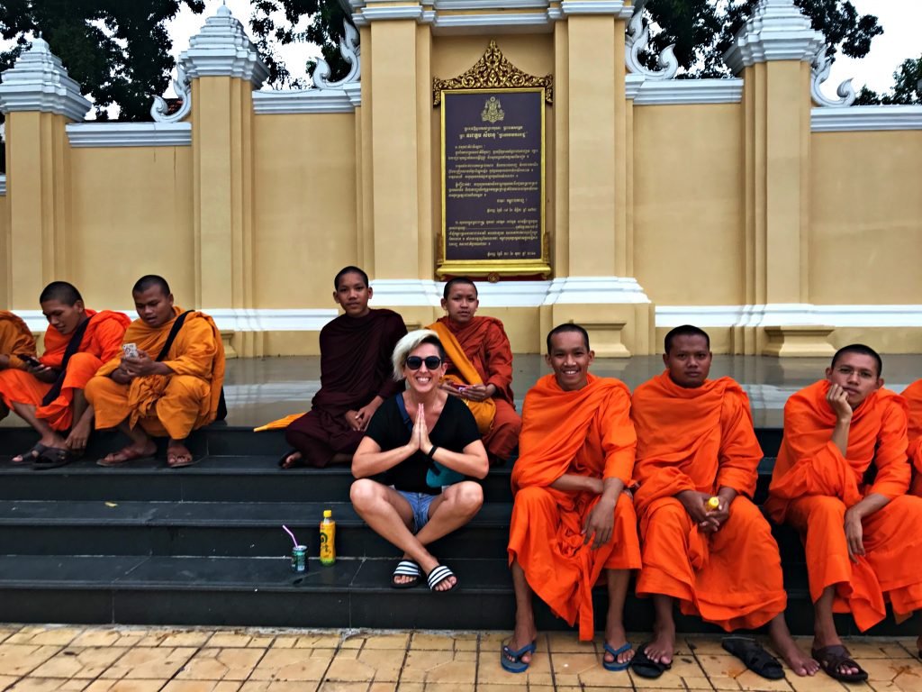 İlk gün önce meşhur Ayn kahvaltısı ve akabinde şehir turu yapacağız, bir bölümü tuk tuk ile bir bölümü yürüyerek. Her yer genç Monk’larla dolu. Sokak satıcıları, her yerde pişen çeşit çeşit tam detayına bakamadığım etler, yemekler, seyyar benzinlikler, poşette satılan Kamboçya kahveleri, eski Pepsi şişelerine doldurulmuş motor yağları… Çıplak çocuklar, diğer taraftan bu kadar keşmekeşe rağmen gülen yüzler. Budizm’den midir bilinmez.