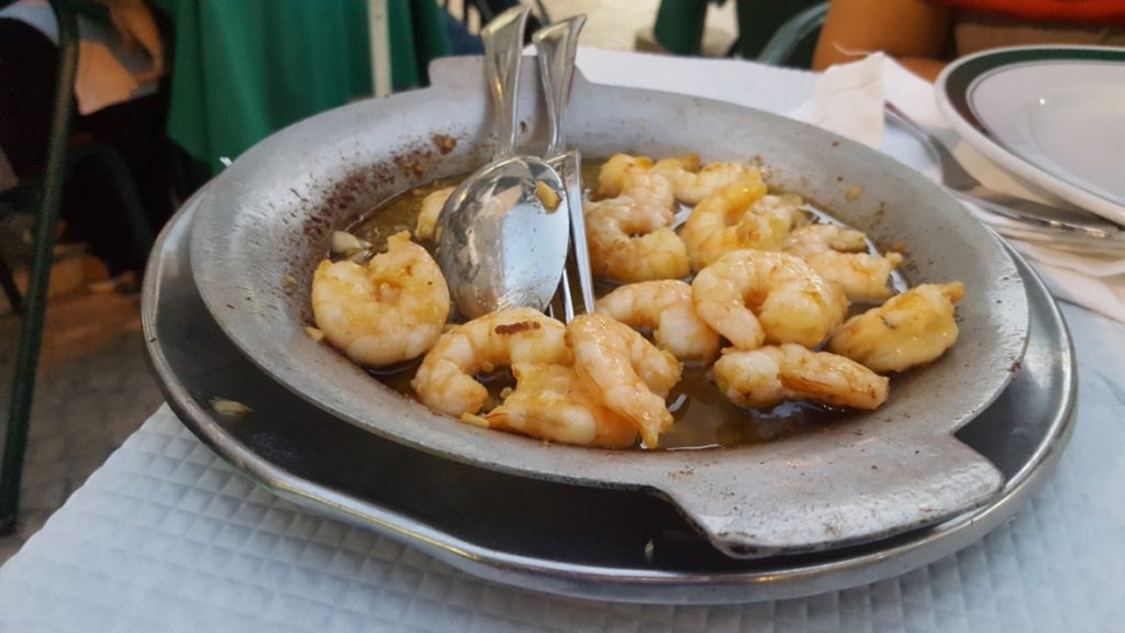 Al sana akşam yemeği için yer ve şıp diye önüme çıkması da ayrı sevindiriyor beni. İsmi Pinoquio. Yeşil büyük şemsiyeleri ile dikkat çekiyor, Restauradores meydanında hemen köşede. Masalara bakıyoruz insanlar neler yiyor özellikle diye. Deli gibi aç değiliz ama yeriz bence yine güzel bir deniz mahsülü. Karides istiyoruz, masaya hemen bir zeytin tabağı geliyor ki enfes. 1 şişe beyaz şarabımız. Oh oh keyiften o an ölsem pişman olmam. Yetti bana bu yaşam diyebilirim. Gerçekten deniz ürünleri nefis. Diğer günlerde de oradan geçerken acaba otursak mı diye düşündük çok kez tok olduğumuz halde.