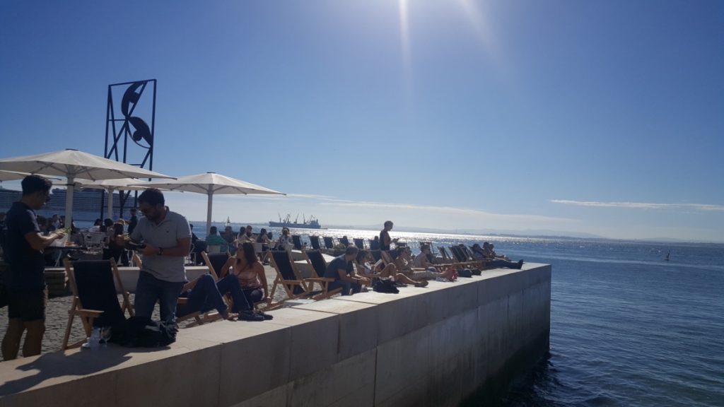 Son günümüzde yine tüm gün şehirdeyiz. Rua Augusta civarından geçip Praça do Commercio’ya ulaşıyoruz. Bu büyük meydan da bol fotoğraf çekilecek yerlerden biri. Sahil boyu yürüyüp, ilk günden aklımızda kalan Time Out Market’e gidiyoruz. Öğle yemeğimiz orada olacak.  Ben ısrarlar istridye yemek istiyorum. Geçtiğimiz yıllarda ilk denemelerimde başarısız olduğum için bu sınavı geçmeliyim diyorum. Limonlamayı unutmadan.