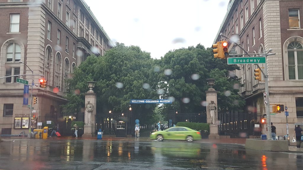 Yemek sonrası kuzeye doğru Hudson nehri kenarından ilerliyoruz. Pek çok manzara noktası var Manhattan adasına bakabileceğimiz şekilde. Fakat o ne, kara bulutlar yaklaşıyor. Hava durumu yağış göstermemiş olsa da New York böyle işte, bir anda değişebiliyor. Washington köprüsünden Manhattan’a geçip, önce Harlem bölgesinde arabayla dolaşıyoruz. Daha sonra Columbia Üniversitesi ve yine üniversiteye bağlı binalar, aralardaki parklar, yağmurdan sıçana dönmüş insanlar görüyoruz.