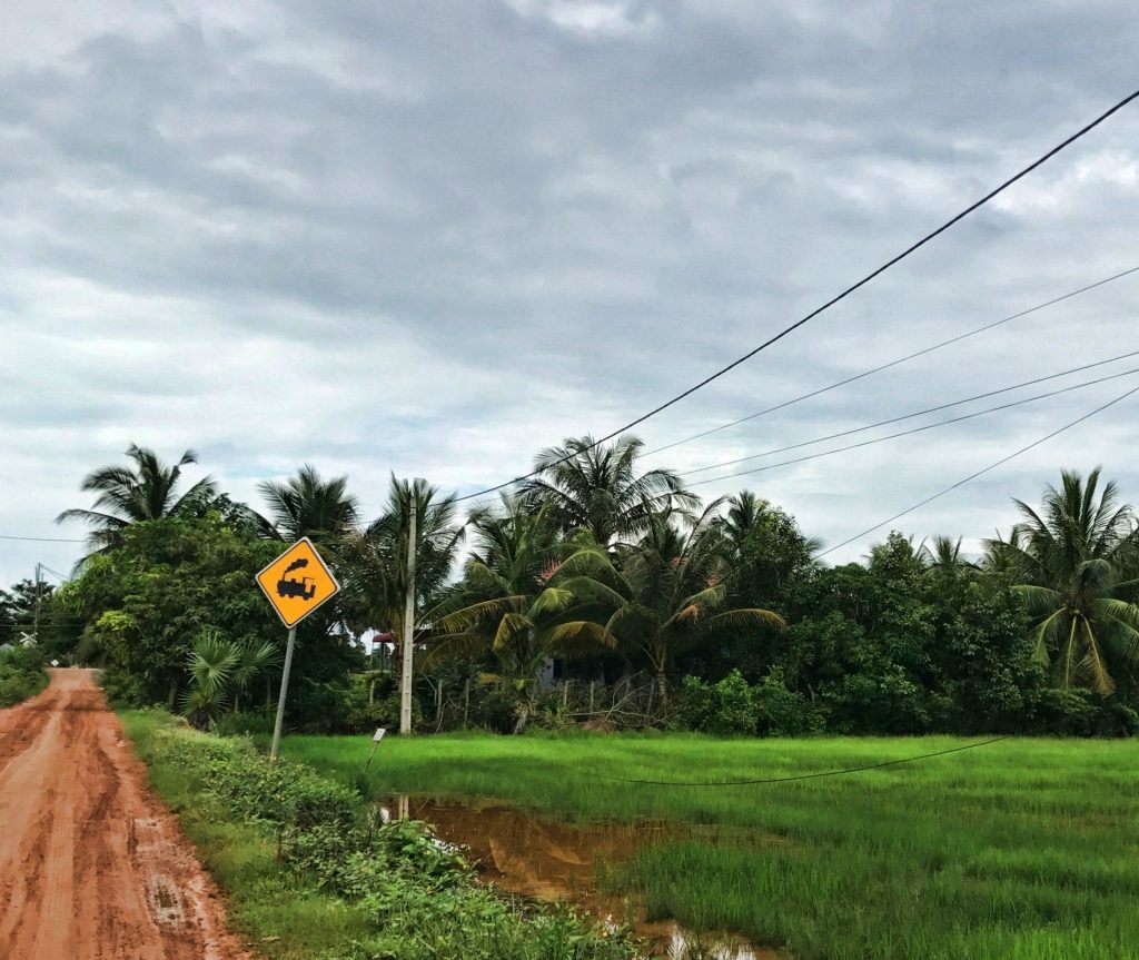 İşte Asya’dayım dedirtiyor insana gerçekten! Önce şoförümüze radyoyu kapamasını rica ediyoruz, kafamız şişmiş ilk 10 dakikada. Sonra da sürekli kornaya basması delirtiyor bizi ama yapacak bir şey yok. Bulmuşuz adamı, Kampot‘a varana kadar ses etmek yok. O arada yol gerçekten 40 yaşıma kadar gördüklerimden çok farklı. Bu ilk Asya ziyaretim benim, mazur görün gerçekten her şey çok yeni, çok başka.