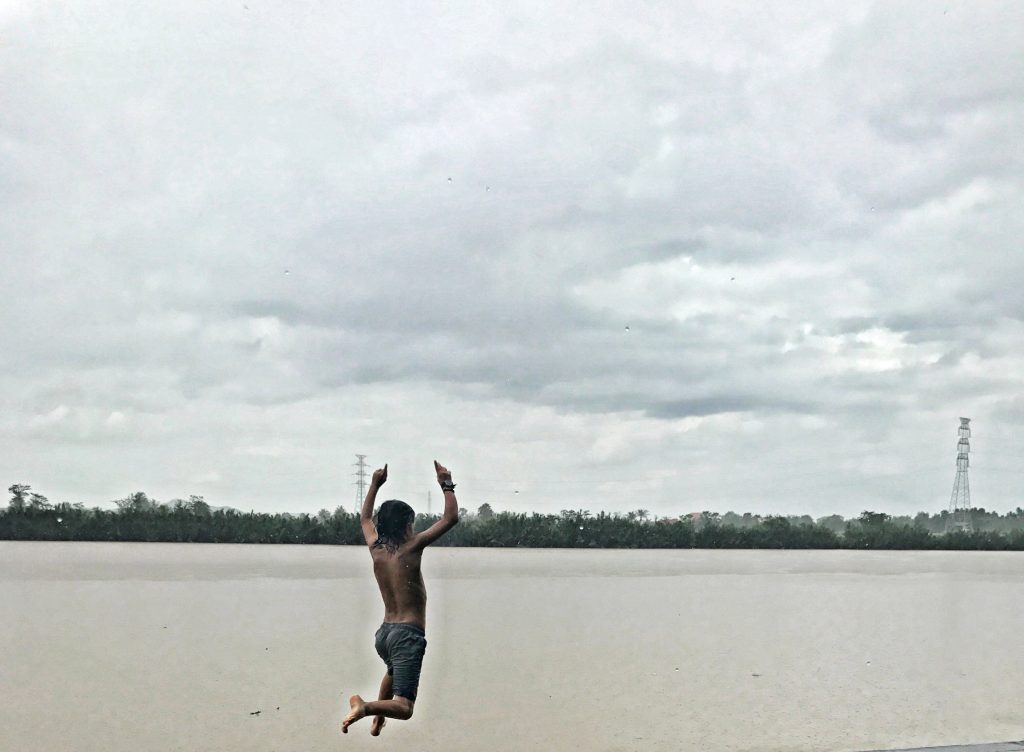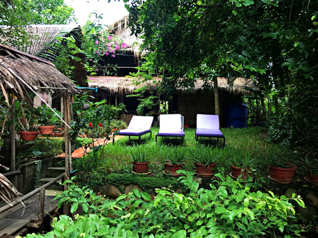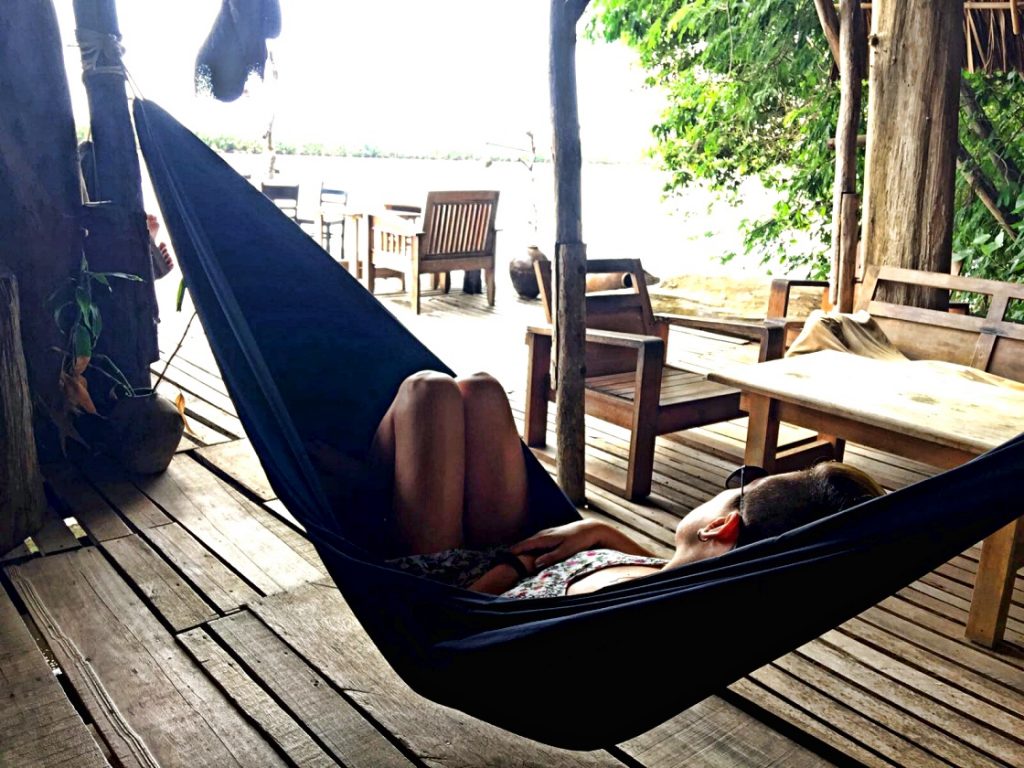 İkinci gün hafif yağmur devam ederken yürüyerek nehrin karşı yakasına, Samon’s Village‘a doğru gidiyoruz. Niyetimiz günü yayarak orada geçirmek. Doğa içinde ağaç evler ve nehrin üzerine yapılmış bir restoran. Hamaklar her yerde. Yine terlikler çıkıyor ayaktan. Bir aile var, aksanlarından Avustralyalı olduklarını düşünüyorum. Kadın Cindy Crawford gibi, 3 tane çocuğu ile zaman geçiriyor. Oğlan durup durup bana göre boklu nehre atlıyor, yüzüp geri çıkıyor.