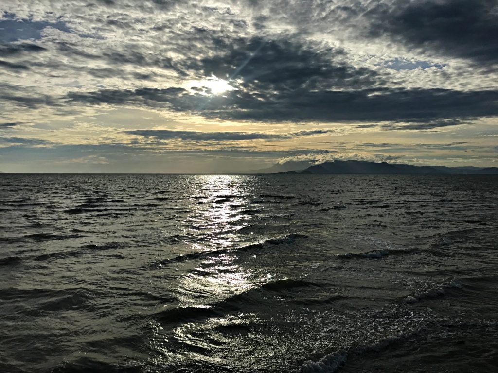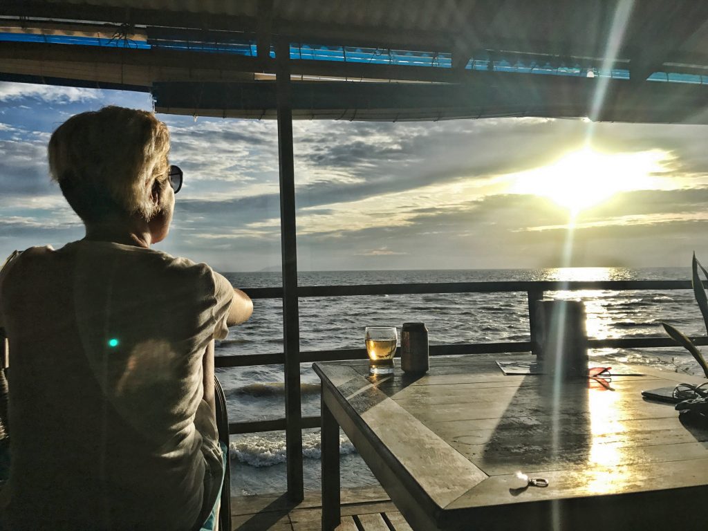 Balık pazarına gidiyoruz akşam üzeri, evet o yengeç yenecek! Gün batımı nedense bu coğrafyada ekvatora yakınlık sebebi ile herhalde müthiş. Denize inen güneş, bulutlar, dağlar, adalar hepsi bir başka görünüyor. Bitsin istemiyor insan.