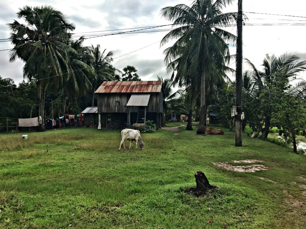 Tuktuk ile Kampot’tan Kep’e geçerken kırmızı topraklara sanki yeşil ağaçlar ekilmiş, her yana ayrı bir manzara fonu hazırlanmış gibi. Ülkenin geneli HDR görünümünde. Arada Müslüman köyler, minik camiler ve ezan sesi de duyuluyor. Ülkenin geneli Budist olmakla birlikte küçük bir kesim de Müslümanlığı seçmiş. Bahçelerde zayıf beyaz inekler, derme çatma evler, çıplak çocuklar ve bolca motosiklet.